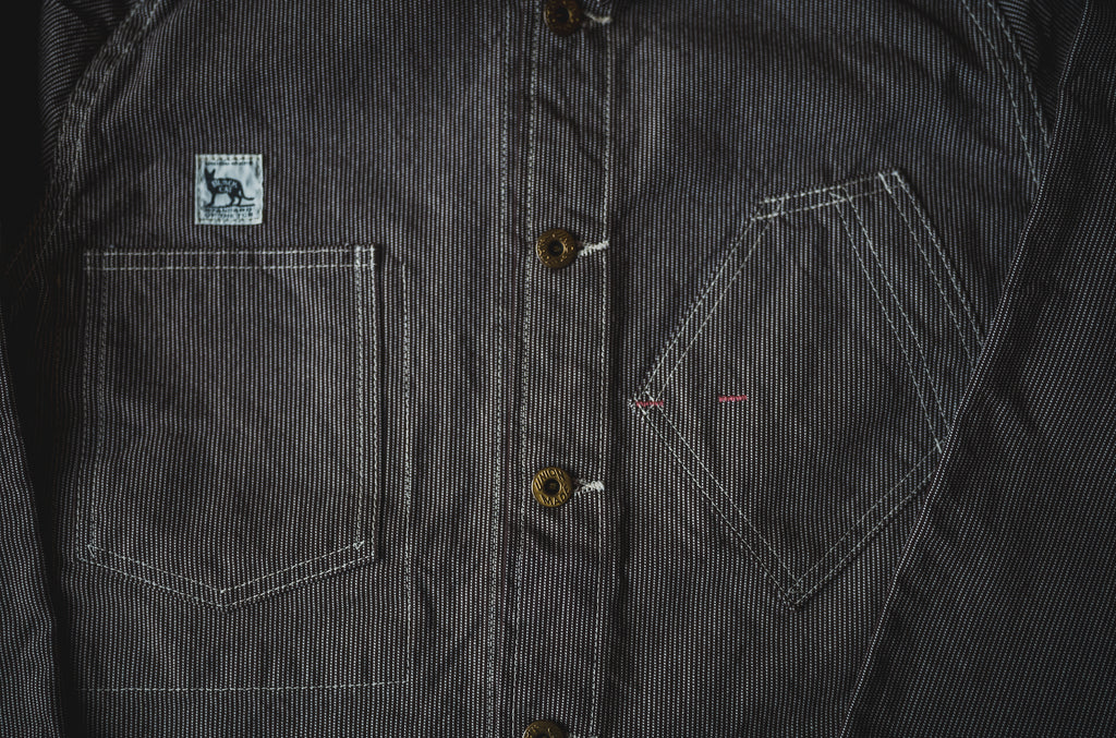We've created this jacket in reference of a vintage chore jacket from TCB archives. The asymmetry pockets shapes and the raglans sleeves are often seen as the features for this type of jacket from 20's.