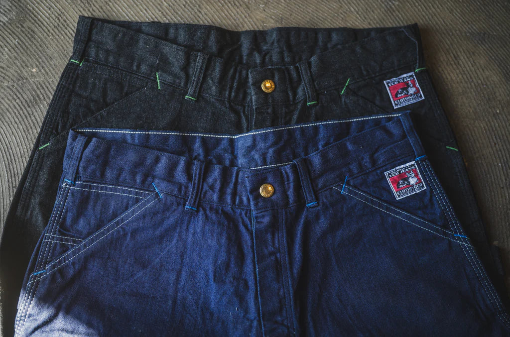 10.8oz Indigo Rope dyed/ 2-by-1 weaving construction like vintage painter pants.